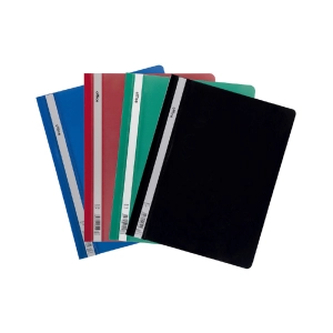 Carpeta A4 plástica con lomo portacarátula y folios de 30 micrones.